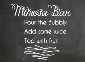 Easy Entertaining: Champagne Cocktail and Mimosa Bar (and Free ... Free chalkboard style printable for a champagne or mimosa bar. Easy and fun idea for your next brunch--Mother's Day, Easter, New Year's Day, etc. ... select several juices to use as your add-ins. I used orange juice for the traditional mimosa, plus a white grape/peach blend and a strawberry/kiwi blend. Raspberries, peaches, and strawberries ...