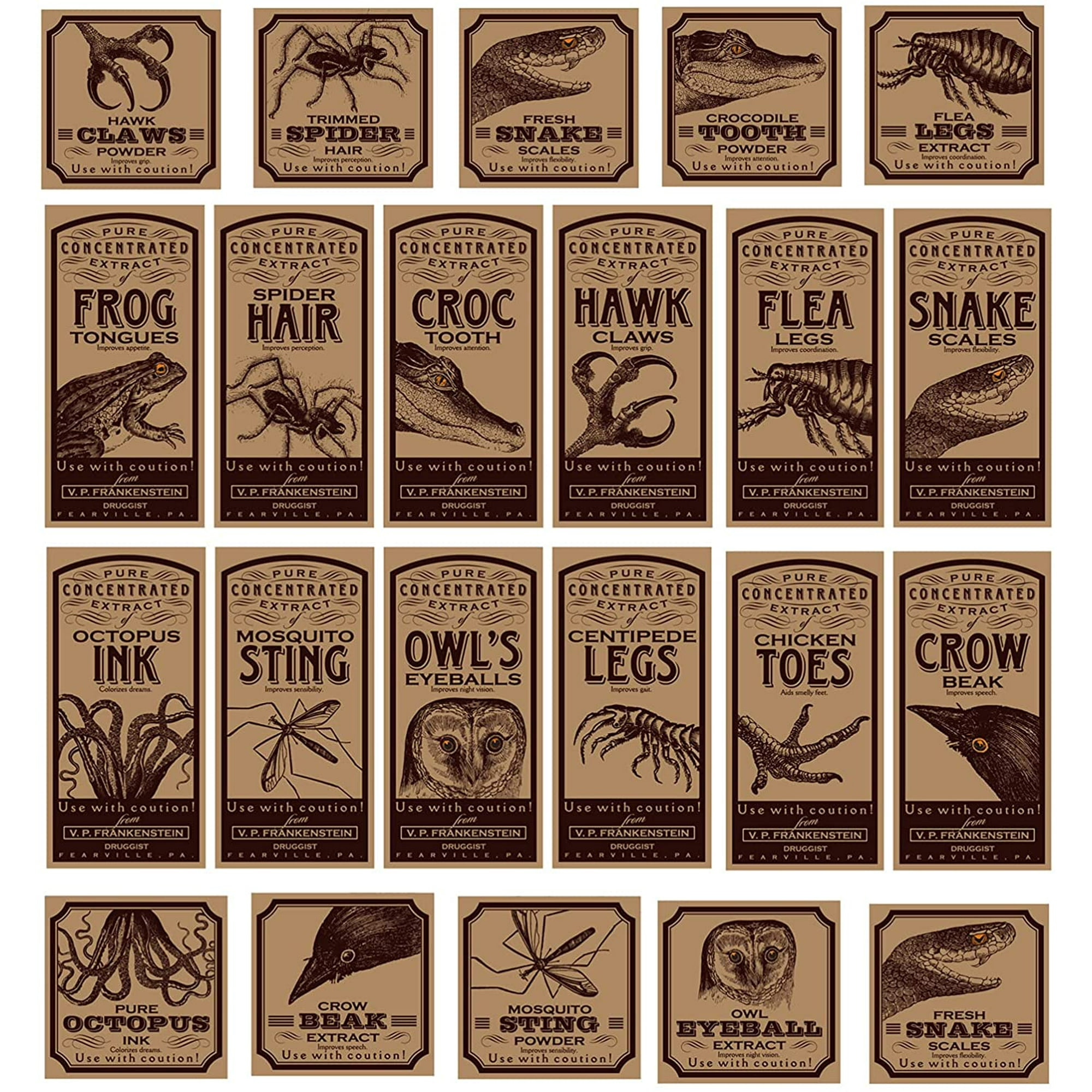 180 Pieces Halloween Bottle Labels Animal Apothecary Bottle Labels Stickers Potions Vintage Laminated Stickers Halloween Medicine Bottle Label ...