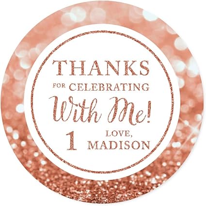 Andaz Press Personalized Glitzy Faux Rose Gold Glitter Round Sticker Labels, Thanks for Celebrating with Me 1, 1st Birthday or Anniversary, 40-Pack, ...