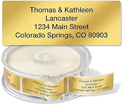Gold Foil Rolled Personalized Return Address Labels with Dispenser – Set of 250, Small, Self-Adhesive Stickers, by Colorful Images
